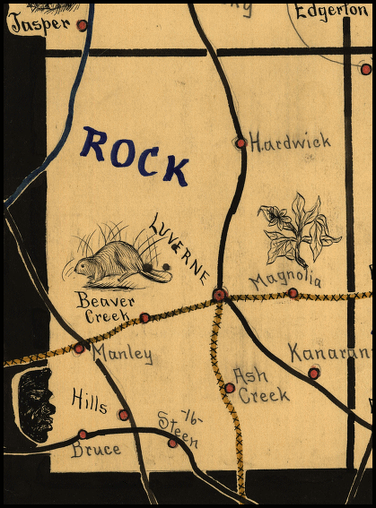 Rock county was originally created in 1857. In 1869 the settlers petition to begin county government and in 1870 the county was officially organized. Governor Austin declared Luverne as the county seat of Rock county in 1870.