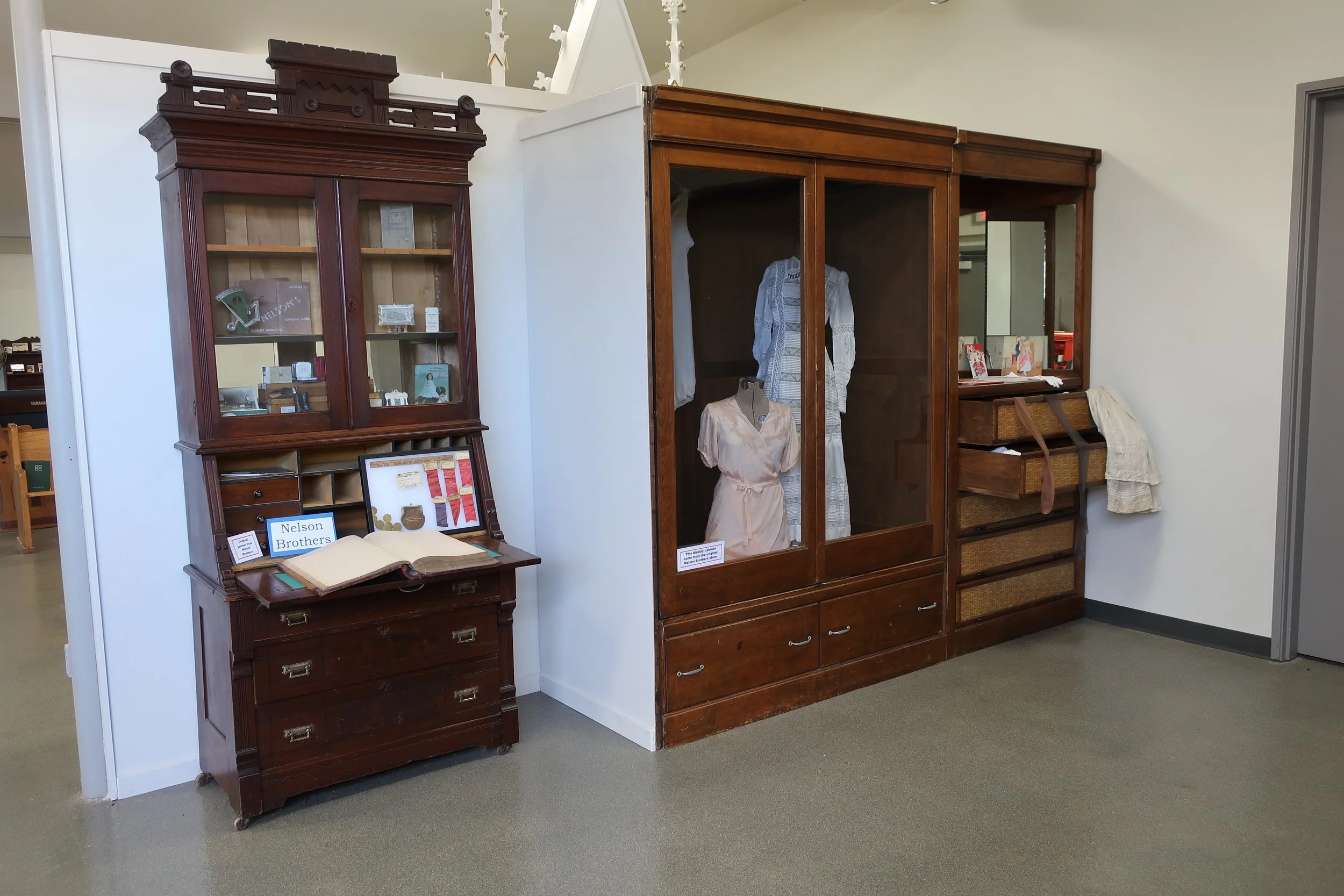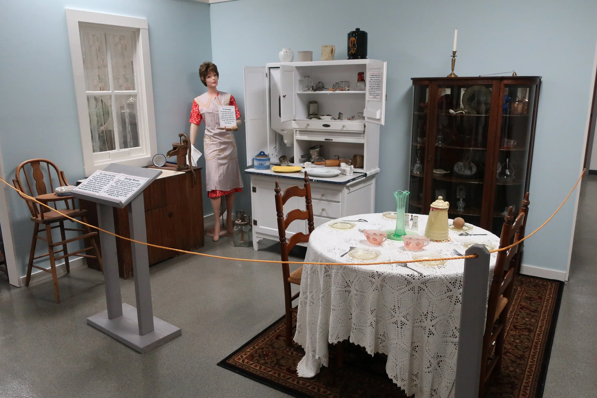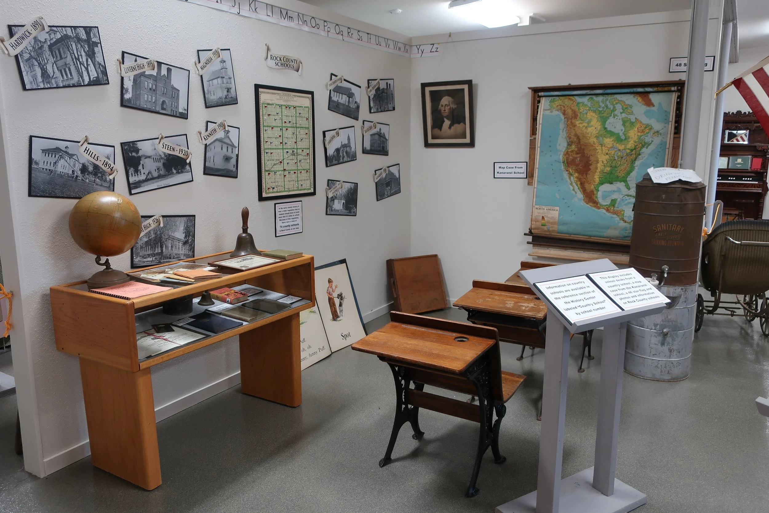 The Early Life in Rock County exhibit is located in the bay area of the History Center. Several exhibits have been set up that depict different aspects of life in Rock County.